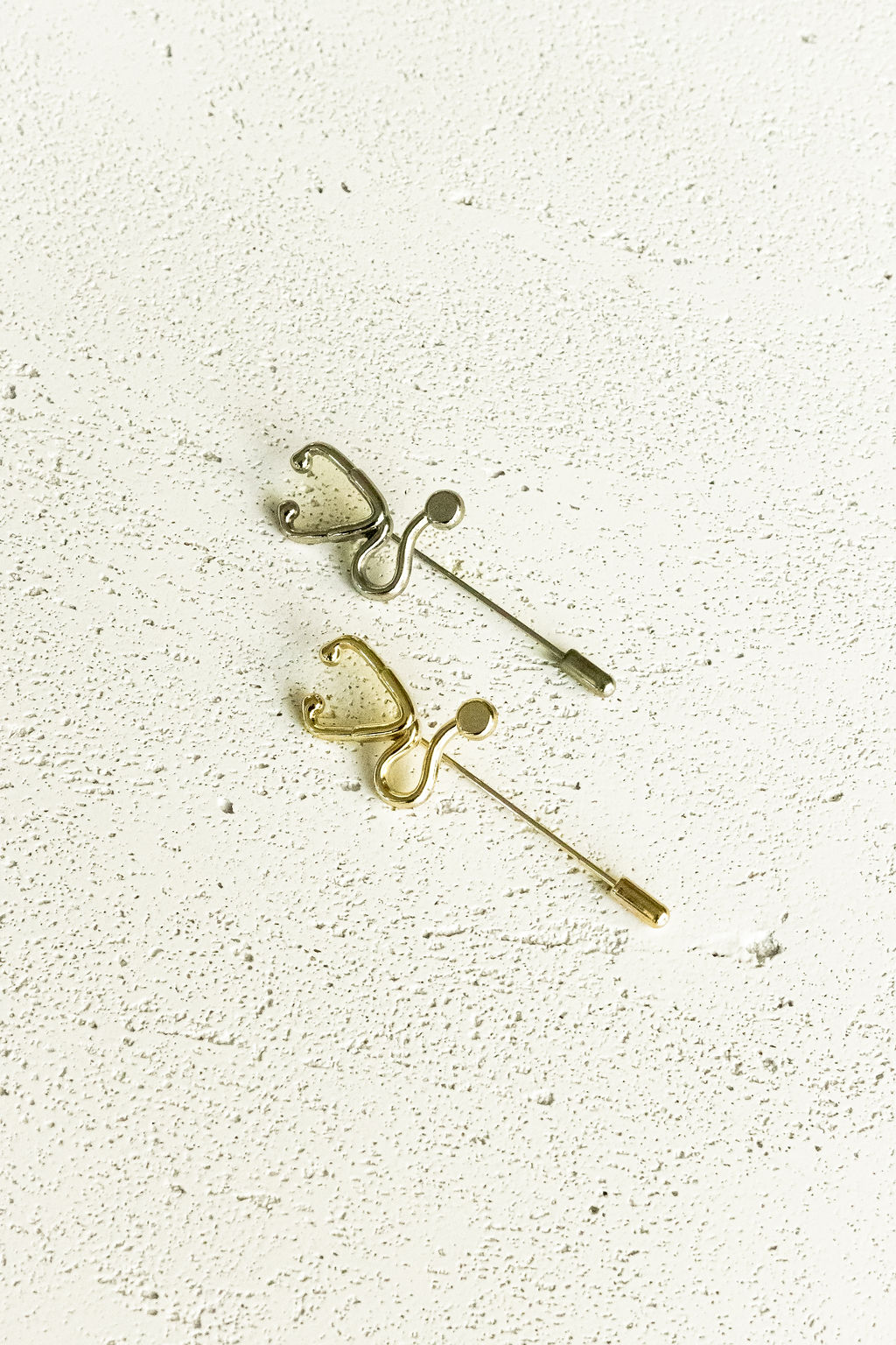 Stethoscope for your lapel, tie or scarf 2 options to select from can button to select – gold or silver plated